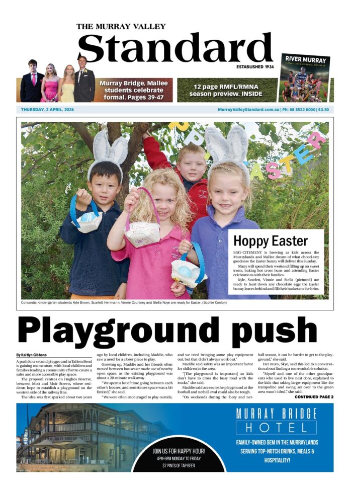 The Murray Valley Standard – 2nd April 2026 Subscribe or Login to see the rest of the content. Username Password * Remember Me Forgot Password News Dog rego fees increase 19/04/2026 Dog owners across the region will pay more from July, after the Rural City of Murray Bridge approved a 3.3 per cent increase in... Walking for change 19/04/2026 A Murray Bridge woman is once again lacing up her walking shoes in support of autism awareness, committing to 10,000 steps a day throughout... Public sentiment shown 18/04/2026 A report has been presented to the Southern Mallee District Council (SMDC) following an extensive public consultation period regarding the proposed revocation of community...
