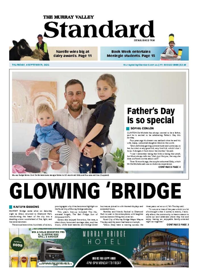 The Murray Valley Standard – 4th September 2025 Subscribe or Login to see the rest of the content. Username Password * Remember Me Forgot Password News Honouring our farmers 05/12/2025 To pay tribute to local primary producers doing it tough during the ongoing drought, the Tailem Bend Community Centre (TBCC) is hosting a community... Drink-driver stopped 05/12/2025 A man has been reported for alleged driving offences at Tailem Bend. About 7.40pm on Monday 29 November, police stopped a Holden sedan on Lime... Jervois jump up to second 05/12/2025 Murray Bridge has cemented its place at the top of the Lower Murray Bowling Association Division 1 standings with a commanding win against Mannum. Elsewhere,...