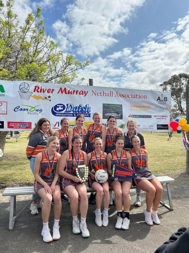 Southern Mallee Suns A Reserves coach Muriel Walter and her team who celebrated their first A Grade premiership for the Suns in September last year. (Supplied)