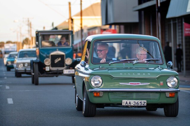 Tailem Bend Auto Club members, Michael and Claire Holiday, one of many club cars paraded during the 2020 Supercar Transporter Parade in Tailem Bend’s main Street, July 7, 2020.
