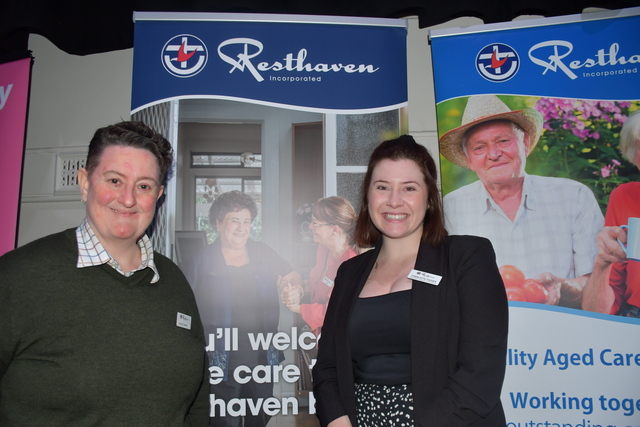 Resthaven Murray Bridge manager Charlie Roe with marketing and communications officer Charlotte Tucker at the Murray Bridge Rotary Aged and Carers Expo. (Kaitlyn Gibbons: 494979)