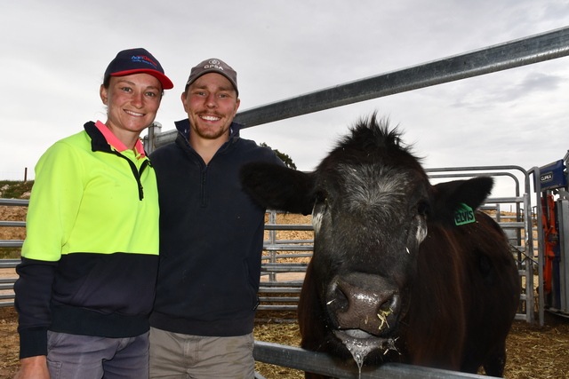 Narelle and Joel Zanker, with their pet cow, Elvis. (Kaitlyn Gibbons: 507215)