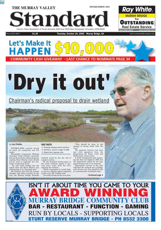 Headlines made in 2007 25/10/2025 FacebookTwitterEmail Thursday, October 26, 2006 ‘DRY IT OUT’ Riverglades wetland should be dried out completely and left empty. Riverglades Community Wetland chairman Geoff Clothier has […] Subscribe or Login to see the rest of the content. Username Password * Remember Me Forgot Password