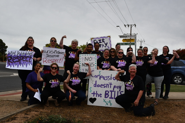 Nurses and midwives from Murray Bridge and Mannum rallied for fairer pay and better working conditions. (Jason Irvine: 514207)