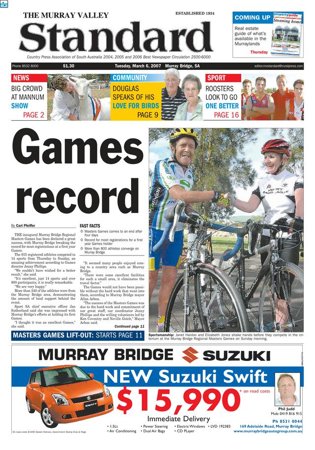 GAMES RECORD The inaugural Murray Bridge Regional Masters Games has been declared a great success, with Murray Bridge breaking the […]