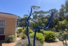 Two Murraylands Retirement Village residents have painted a dead tree blue to support mental health.