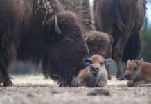 Six fluffy American Bison calves have been born at Monarto Safari Park and are finding their hooves on the Mallee Plains.
