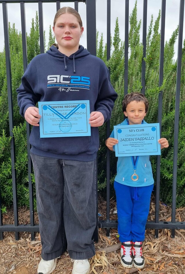 Little athletics stars shine as season returns 15/10/2025 FacebookTwitterEmail U15 Tilly-Rose Gordon now holds the 3kg shot put 10.94m centre record and U9 Jaiden Vassallo was welcomed into the 50’s Attendance Club. (Supplied) Amanda Martin Murray Bridge Little Athletics Centre welcomed 75 excited athletes at their 2025/26 summer season launch and first Come 'n’ Try […] Subscribe or Login to see the rest of the content. Username Password * Remember Me Forgot Password