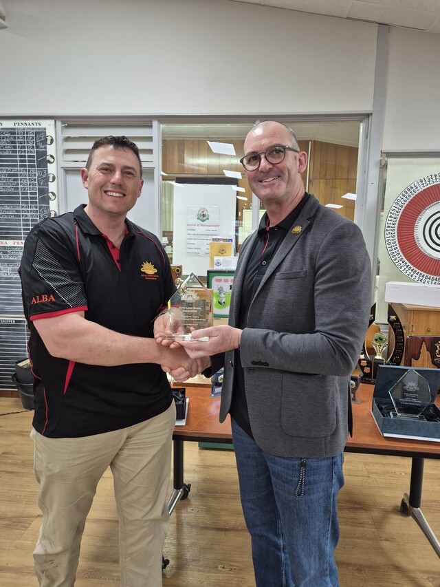 Joe Di Santo of the Army Diggers was presented the Army Encouragement Award by Army Lawn Bowls Association president Arron Ryan. (Supplied)